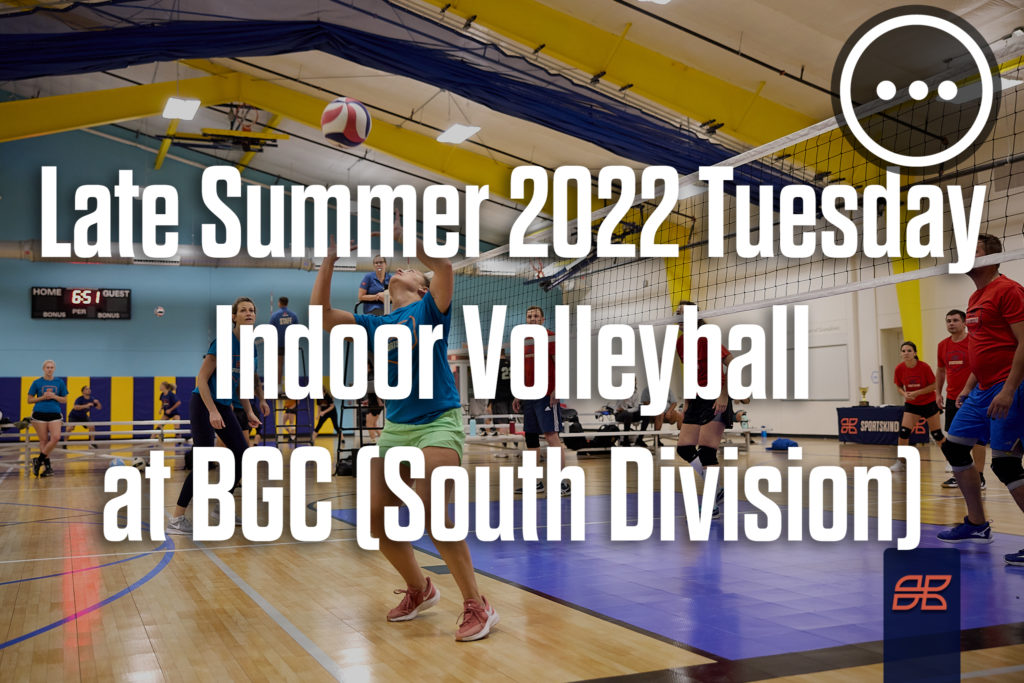 Late Summer 2022 Indoor Volleyball Tuesday at Boys and Girls Club SOUTH DIVISION